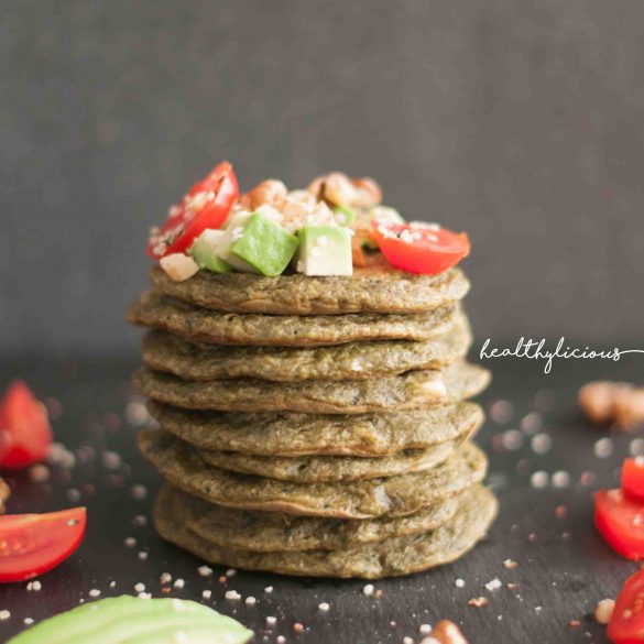 Нареждат се една върху друга като куличка. Намазват се с домашно масло и се поръсват с хималайска сол. Декорират се с намачкано авокадо с лимонов сок и подправки, чери домати, маслини и конопени семена. Може да добавите настъргана тиквичка или морков в сместа за повече пухкавост.