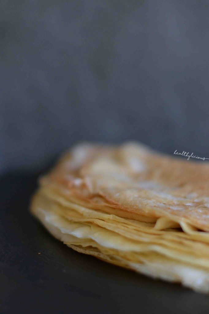2. Намажете тигана с масло и загрейте добре. Изпечете като стандартни палачинки като внимавате при обръщането, тъй като са много тънки. Гарнирайте по избор.